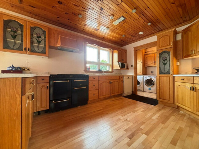 Mature gardens, extensive decking with barbecue area and a large detached garage further enhance the appeal. Energy efficiency is supported by solar panels alongside oil, solid fuel and underfloor heating. Conveniently located within easy reach of Longford, Cavan and surrounding towns, this is a versatile home in a truly scenic setting.