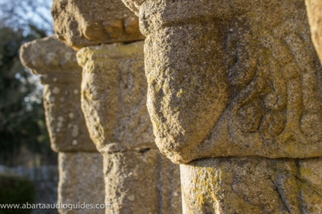 At Killeshin, the doorway is absolutely magnificent. It has four arches featuring carvings of chevrons, zig-zag, animal and foliage design. The capitals of the arches have human faces carved on them with different expressions and some even beards on their faces. Some suggest that use of shallow carvings and different colour stone indicates that this doorway was possibly painted.