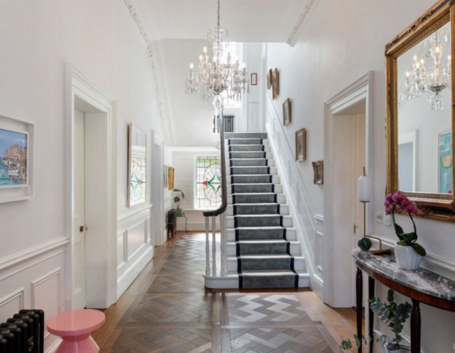 The mews, meanwhile, provides an entirely self-contained living space. With its own kitchen, reception rooms and three bedrooms, it is ideal for guests or extended family. Thoughtful design details, such as a spiral staircase and a light-filled sunroom, add character while maintaining a high level of comfort.