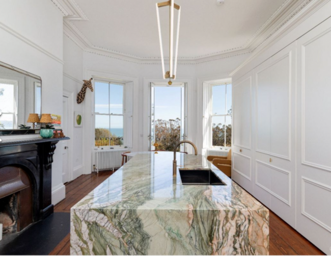 The drawing room, with its generous bay window, captures uninterrupted views across the sea. This is no doubt an ever-changing backdrop that defines daily life here.