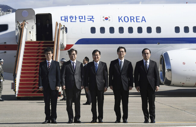 Today’s delegation included spy chief Suh Hoon, who is a veteran in dealings with the North. He is known to have been deeply involved in negotiations to arrange two previous inter-Korean summits in 2000 and 2007.