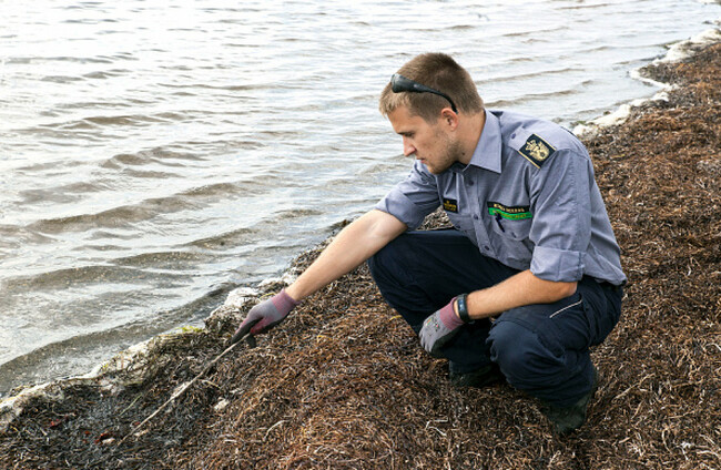 A search team member from the Danish Emergency Services looks for body parts following the death of journalist Kim Wall Ole Jensen - Corbis