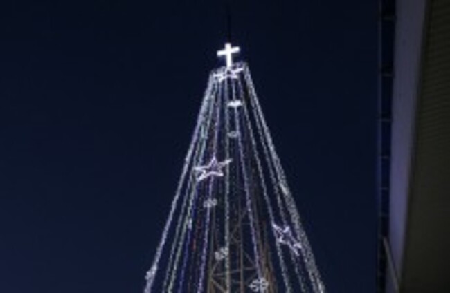 The Yeouido Full Gospel Church, based in Seoul, last night illuminated its 30-metre ‘tree’ – a string of giant fairy lights draped around a broadcasting mast – near the demilitarised zone last night, a move which would further push tensions between the two Korean nations.