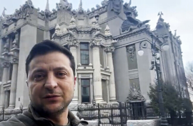 After Ukrainian forces said they had repulsed a Russian attack on their capital, President Volodymyr Zelensky shot a self-shot video vowing to stay and fight on.