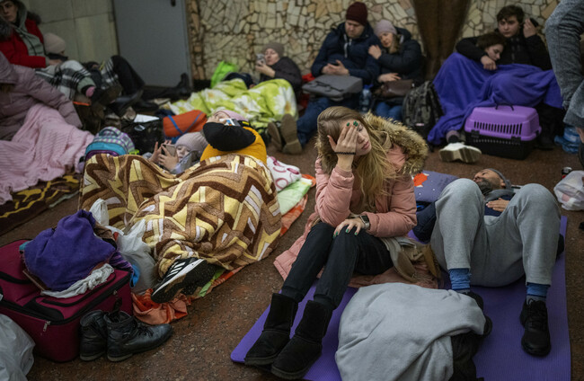 People in the Kyiv subway last night, which is being used as a bomb shelter Emilio Morenatti