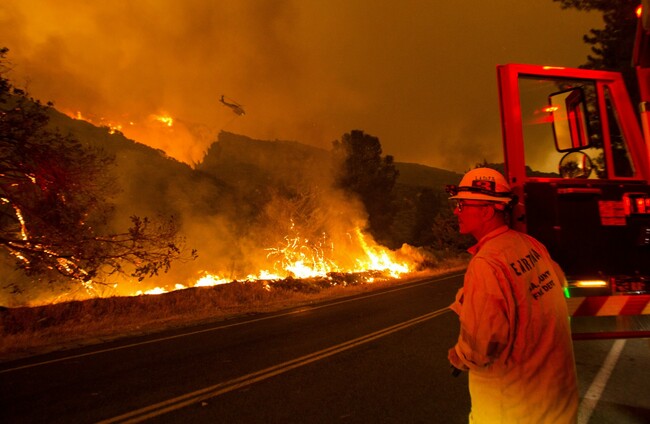 An enormous plume of smoke was visible across much of southern California after the fire broke out yesterday afternoon in dense forest land.