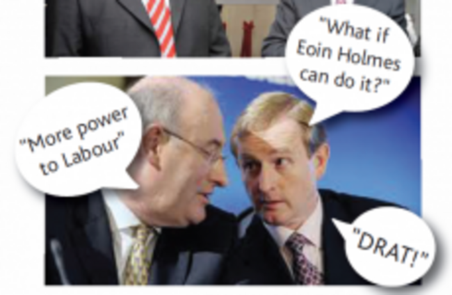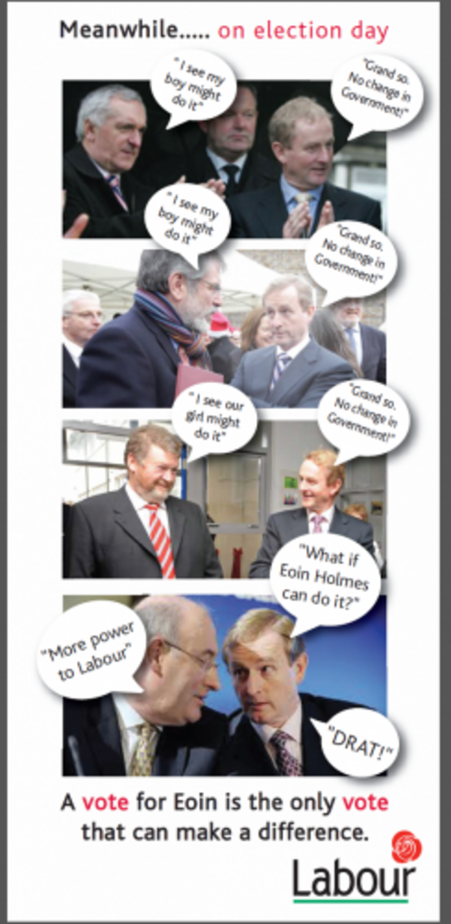 In a caption where Kenny asks Phil Hogan what may happen in the event of a victory for Labour’s Eoin Holmes, however, Hogan says: “More power for Labour,” to Kenny’s dismay.