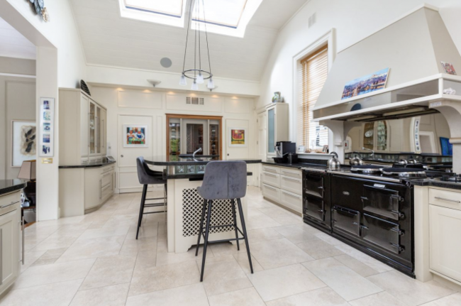 Inside, the home offers well crafted living spaces, including six bedrooms that all have their own bathrooms attached and a whopping seven principal reception areas. Among its standout features are a show-stopping entrance hall with gallery landing, a sun-drenched orangery ideal for evening entertaining, and a kitchen designed to the highest spec – complete with vaulted ceilings, granite worktops, an Aga and even a temperature-controlled wine cellar.