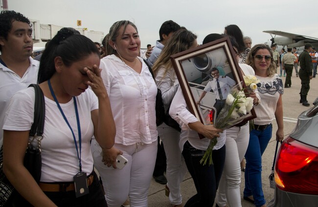 Relatives of LaMia pilot Marcelo Quiroga, who died in a plane crash in Colombia. Juan Karita