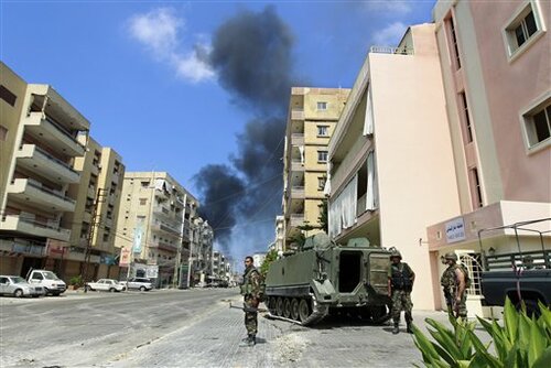 Lebanese Army soldiers monitor during clashes that erupted between followers of a radical Sunni cleric Sheik Ahmad al-Assir and Shiite gunmen in Sidon, Lebanon. (AP Photo/Bilal Hussein)