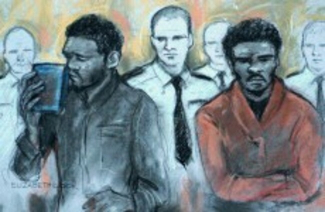 Court artist sketch of Michael Adebowale and Michael Adebolajo. Elizabeth Cook/PA Wire/PA