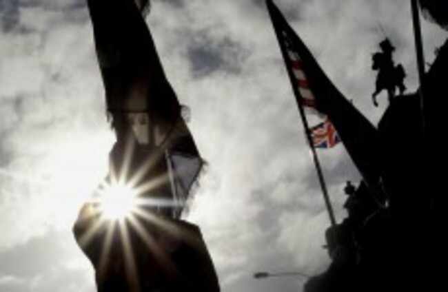Parades, like this Orange Order march, will be discussed at the talks. AP Photo/Peter Morrison