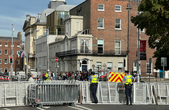 Kildare Street; Molesworth Street; Merrion Street Upper and West; and Merrion Square South were all closed off for parts of today while an extensive cordon of steel barriers were erected along the streets surrounding Dáil Éireann.