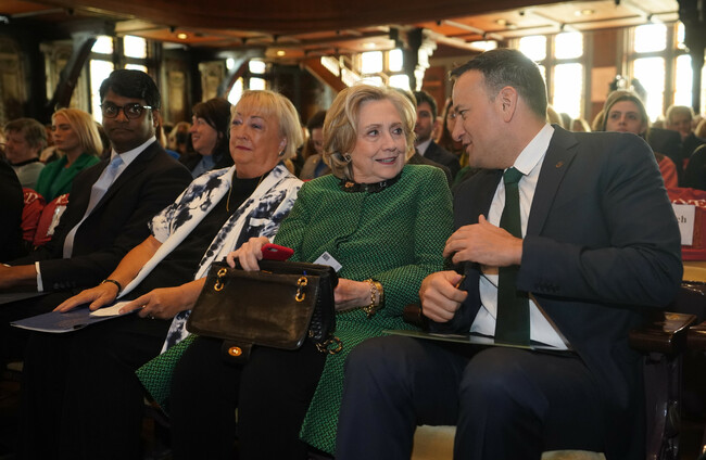 Earlier today, the Taoiseach had met with former Secretary of State and First Lady Hillary Clinton at Georgetown University for an event called “Women at the Helm”, focusing on the role women played in the Northern Ireland peace process.