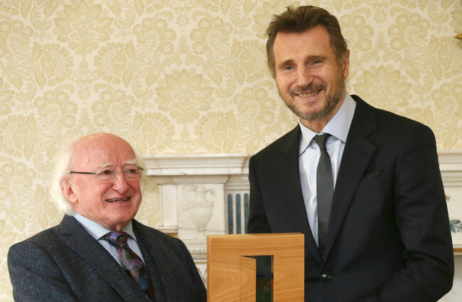ACTOR LIAM NEESON is going to have a busy day. He’s being given a presidential award by Michael D Higgins and appearing on the Late Late Show later.