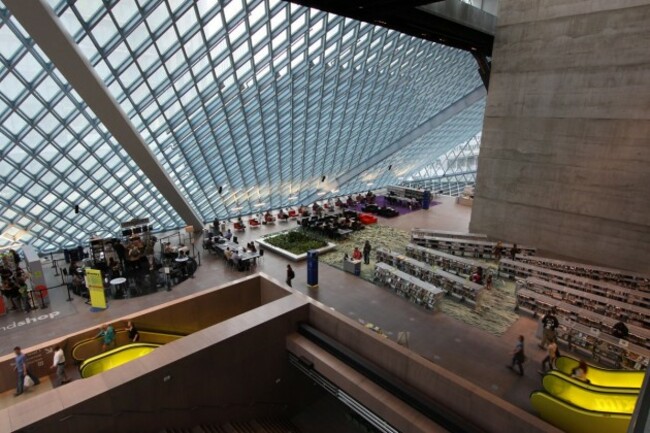 First opened in 2004, the 11-story glass and steel building in downtown Seattle was designed to be a reinvention of the traditional library. The contemporary building is not only a space dedicated to books, but is also an access point for all forms of media.
