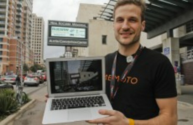 Memoto co-founder Oskar Kalmaru displays a picture taken just moments before with his collar-mounted "lifelogging" camera at the SXSW Interactive Festival in March of this year. AP Photo/Jack Plunkett/PA Images