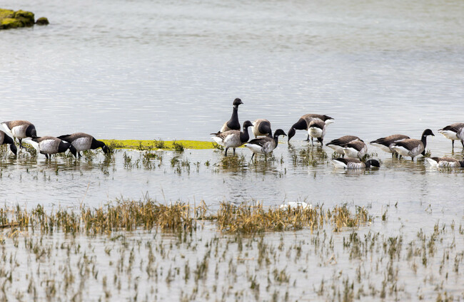 File image of Light-bellied Brent Geese foraging at North Bull Island, Dublin. Alamy Stock Photo
