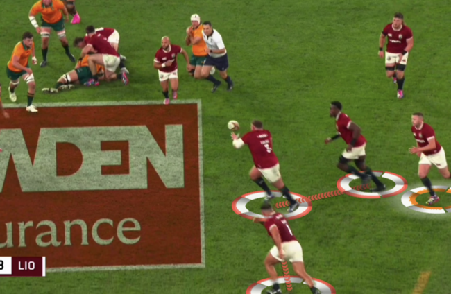 And on third phase, the Lions drop in a new layer as they conjure the disguised inside pass play that Ireland have helped to popularise over the past year.