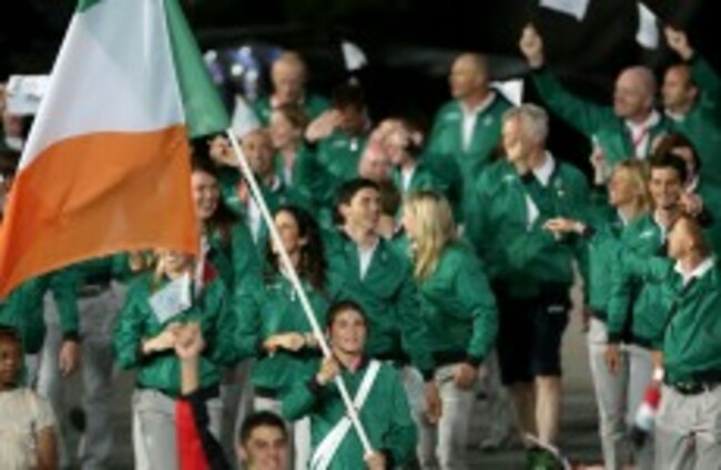 1105 Proper proud moment as Katie leads in our gang with a big smile to the biggest cheer of the proceedings so far. She’s a dinger. The director cuts to the most powerful Irishman in the stadium, Pat Hickey, and An Taoiseach, Enda Kenny too.