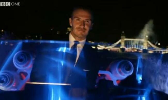 1013 Becks is driving (is that the word) the flame up the Thames on a boat (obviously)! He looks like he’s having fun. In the meantime, there’s a rare moment of reflection as the crowd are asked to remember those not with them tonight.