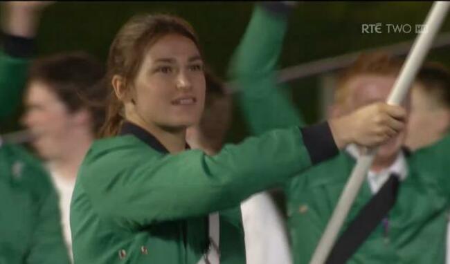 Katie Taylor leads the Irish team in the arena. INPHO/Morgan Treacy