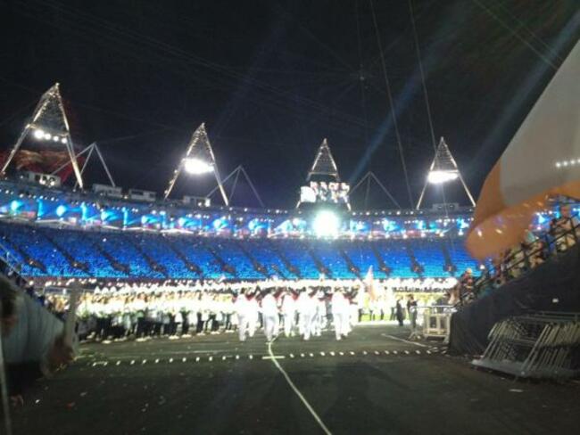 Breaking news? It’s raining in London and the ponchos are out for the first time in the stands in Stratford.  We’ll remain dry throughout a night that promises plenty of surprises, live animal action and Danny Boyle-inspired theatre. Let’s see how it unfolds.