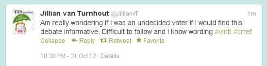 So let’s rephrase that: Did you hear anything tonight that helped you decide how you might vote? If you heard something that actually swayed your vote, that would be interesting to know…