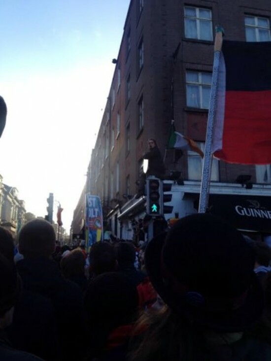 This guy’s perched on top of the traffic lights at the bottom of Kildare Street. Or at least he was, until recently (we’re not saying he fell or anything — but he’s probably climbed down by now).