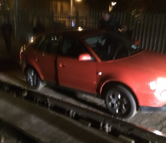 Now someone’s driven their car onto the Luas Green Line.