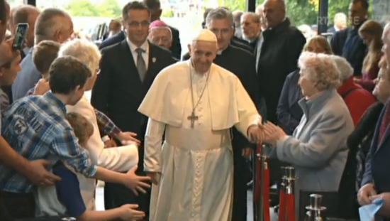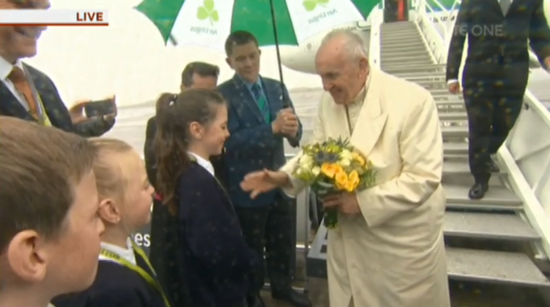 RTÉ is speaking to the family who greeted the pope when he got off the plane in Knock. Mary McCarthy said “time stood still” when he came down the steps and stood in front of her.