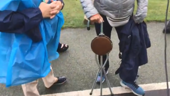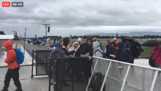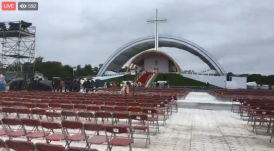 “It was very wet indeed here at the site of the papal Mass, when we arrived shortly after 9am this morning.