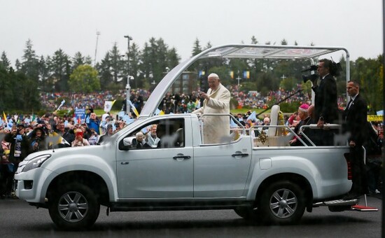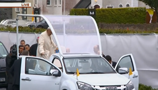 Pope Francis has now arrived in Knock village and is driving through in the Popemobile, thankfully not as quickly as he travelled through Dublin yesterday.