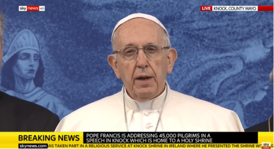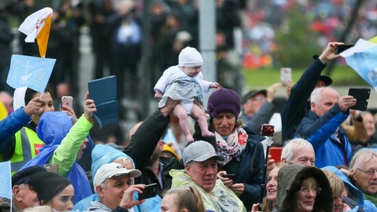 Elsewhere, at least 1,000 people gathered for a vigil at the site of a former home for unmarried mothers in Tuam, Co Galway, to coincide with the papal visit.