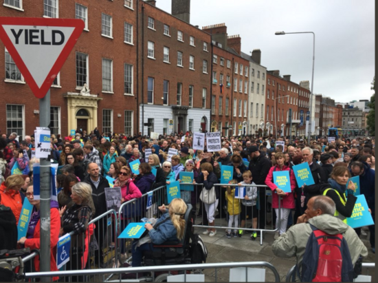 The crowd is now going to start moving in silence to Sean McDermott Street, the site of one of the last Magdalene Laundries.