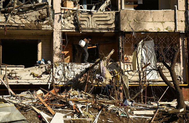 A man clears out an apartment after a missile strike damaged a residential building in Kyiv. SOPA Images Limited/Alamy Live News