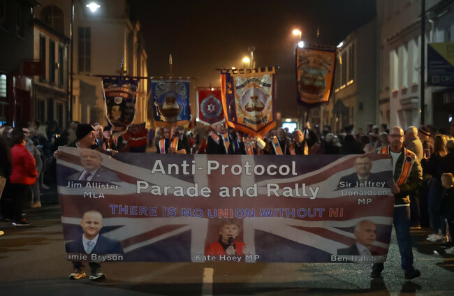 Orange men march during an anti Northern Ireland Protocol rally and parade in March. PA