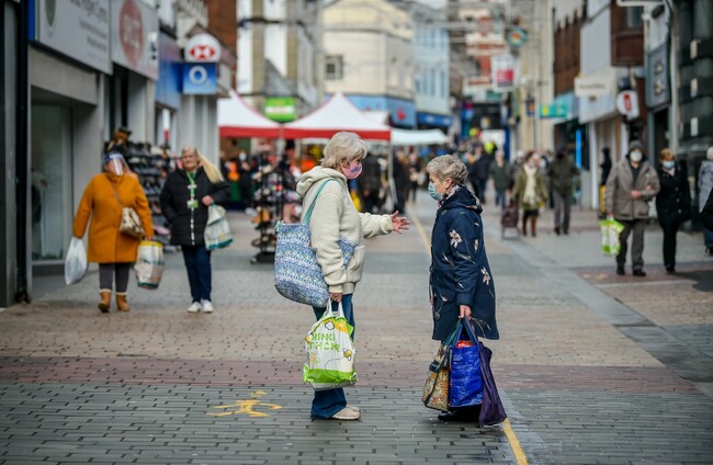 People chat on the High Street in Merthyr Tydfil. PA