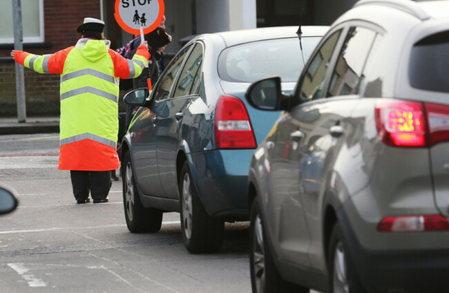 A school traffic warden stops traffic in Dublin. Leon Farrell/Photocall Ireland