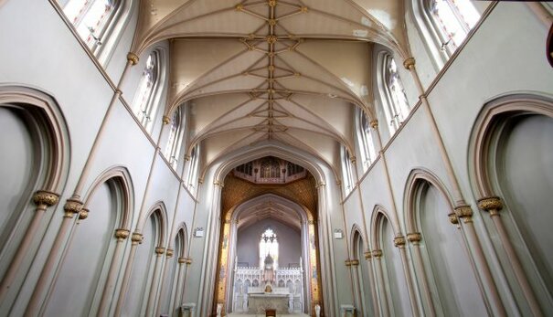 The buildings are filled with architectural gems from the church with its vaulted ceilings and stained glass windows, through to the Abbey with its plasterwork and living accommodation to the former school rooms and science laboratory on the top floor.