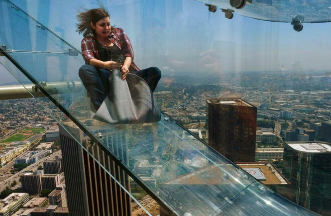 Located nearly 304.8 metres above the ground, the Skyslide is a see-through enclosure 13.7 metres and made of 3.18 centimetre thick glass.