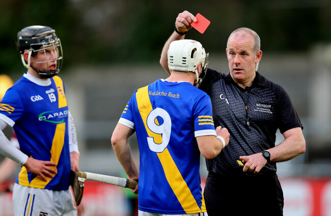Cullen Killeen is sent off by referee Johnny Murphy. Ryan Byrne/INPHO