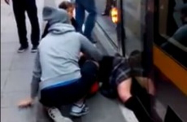 The incident happened at the Jervis Street stop and was filmed by Facebook user Lukasz Pigula.
