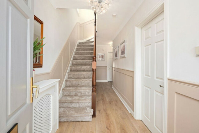 Inside, the home could be mistaken for a show house. Well-maintained and cleverly upgraded, every inch reflects high-end finishes and an eye for interior design. The entrance hall sets the tone, featuring quality oak laminate flooring, elegant wall panelling and brushed steel fixtures that all contribute to the modern surroundings.