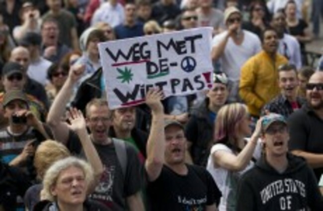 A protest in Maastricht last year against the 'weed pass' which only allows holders of such a pass to purchase marijuana. PETER DEJONG/AP/Press Association Images
