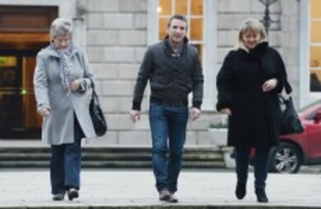 Marina Gambold (left) and Maureen Sullivan (right) with Stephen O'Riordan (centre) from the Magdalenes Survivors Together group after yesterday's meeting. Sasko Lazarov/Photocallireland