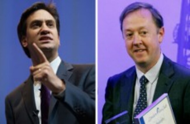 Labour leader Ed Miliband, left, and Mail on Sunday Editor Geordie Greig, right. PA Wire