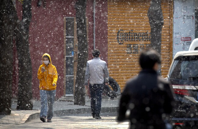 People wearing masks on the streets of Beijing. Mark Schiefelbein/PA Images
