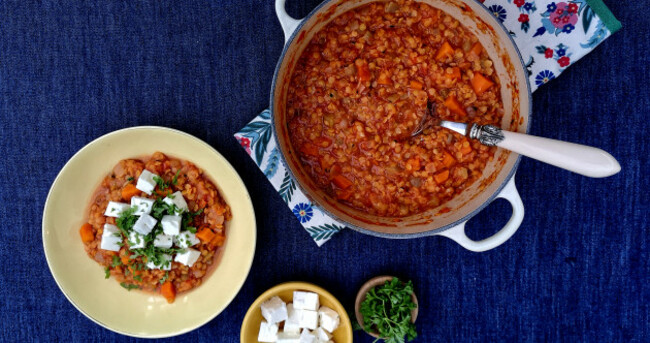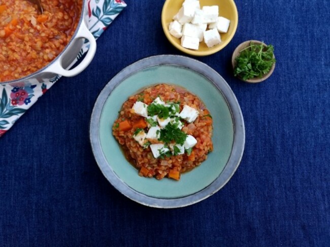 This Greek Lentil Stew has been my go-to comfort food for years – it’s quick, simple and cost very little to cobble together. I make a big batch on the first night and devour a bowlful, crumbled with feta and a hunk of crusty bread on the side. Then I pack the rest away to heat up for midweek for lunches or as a wholesome side for a meaty dinner.