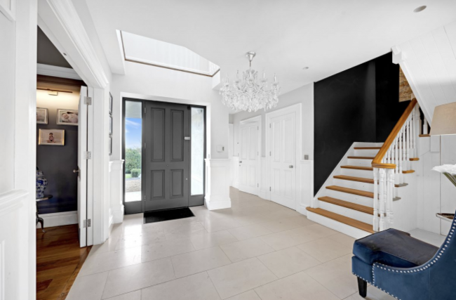 From the moment you approach, it’s clear that this is no ordinary family home. The solid handmade front door, which was crafted by McNally Joinery, opens into a grand entrance hall. This space is defined by limestone floors, bespoke wood panelling and a feature staircase that sets the tone for the design excellence found throughout.